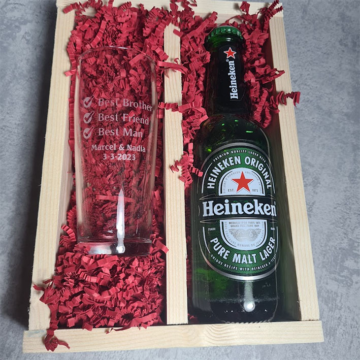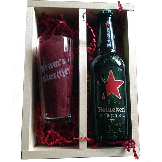 Bestel hier het heineken bierpakket met gegraveerd glas