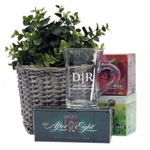 Verwen jezelf of een geliefde met dit luxe theepakket, perfect voor elke gelegenheid. Het pakket bevat een mooi Theeglas Bock met een gegraveerde gravure, een pakje Alex Meijer Fairtrade rooibos thee, een pakje Alex Meijer Fairtrade groene thee en een doosje heerlijke After Eight mint chocolade. Een compleet theemoment voor elke theeliefhebber die houdt van een persoonlijk gebaar.